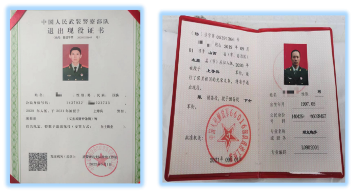 (2)退役复学的考生须上传《入伍批准书》、《退出现役证》照片;