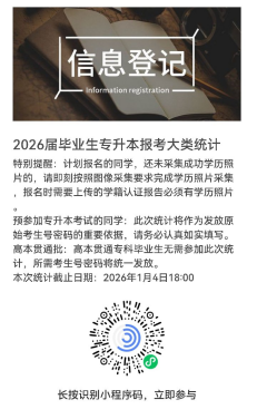 2.有意报名参加2026年专升本考试的毕业生,必须通过微信统计助手登记本人信息及计划报考的对应本科专业大类(专业);不计划参加专升本考试的毕业生请不要填报!